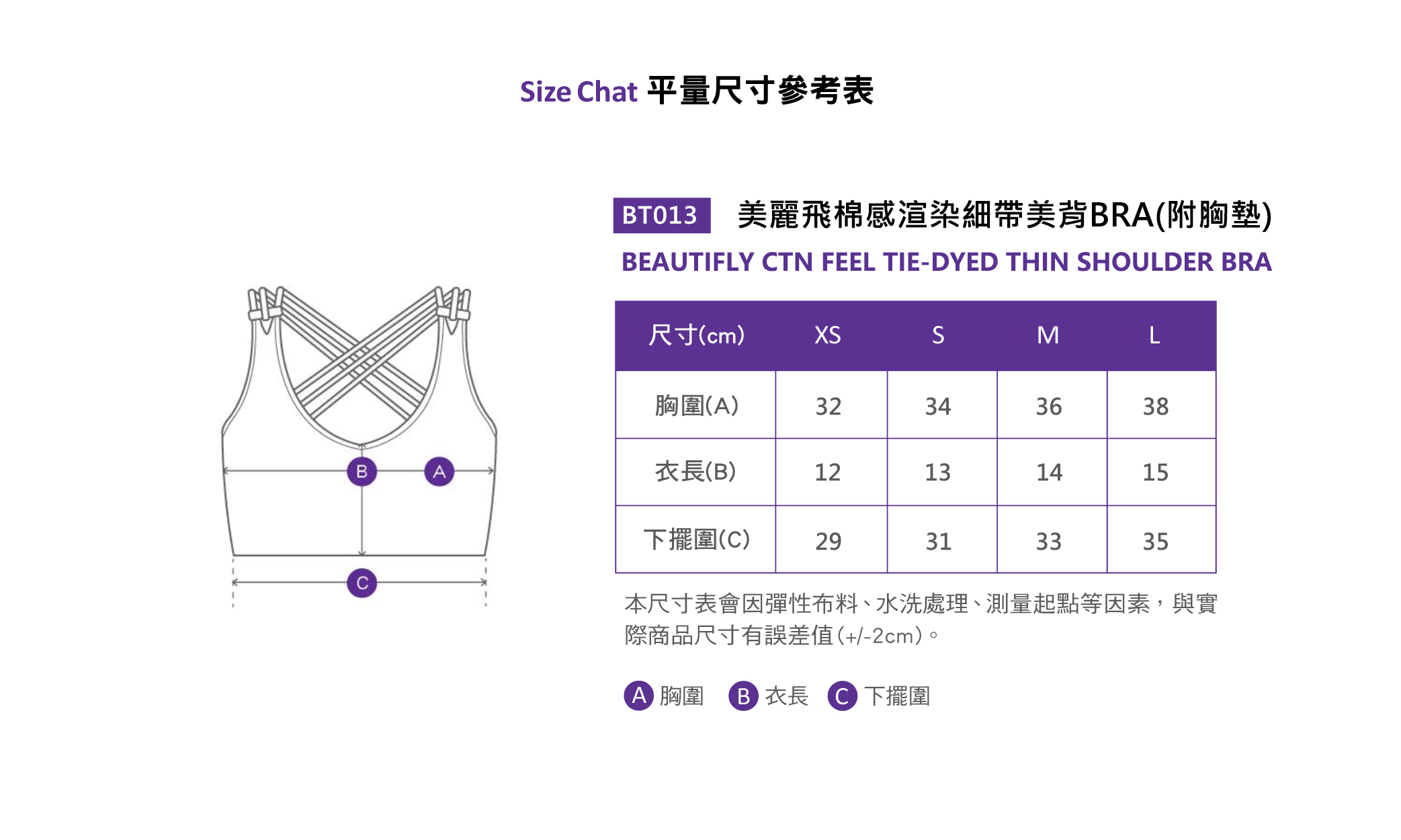 柔順親膚棉感細帶低胸美背設計,前面低胸顯現SEXY胸型,背後交叉線條型設計展現完美背肌效果,也提升肩帶的穩定性,短版BRA內附上薄下厚胸墊,集中托高胸型。
