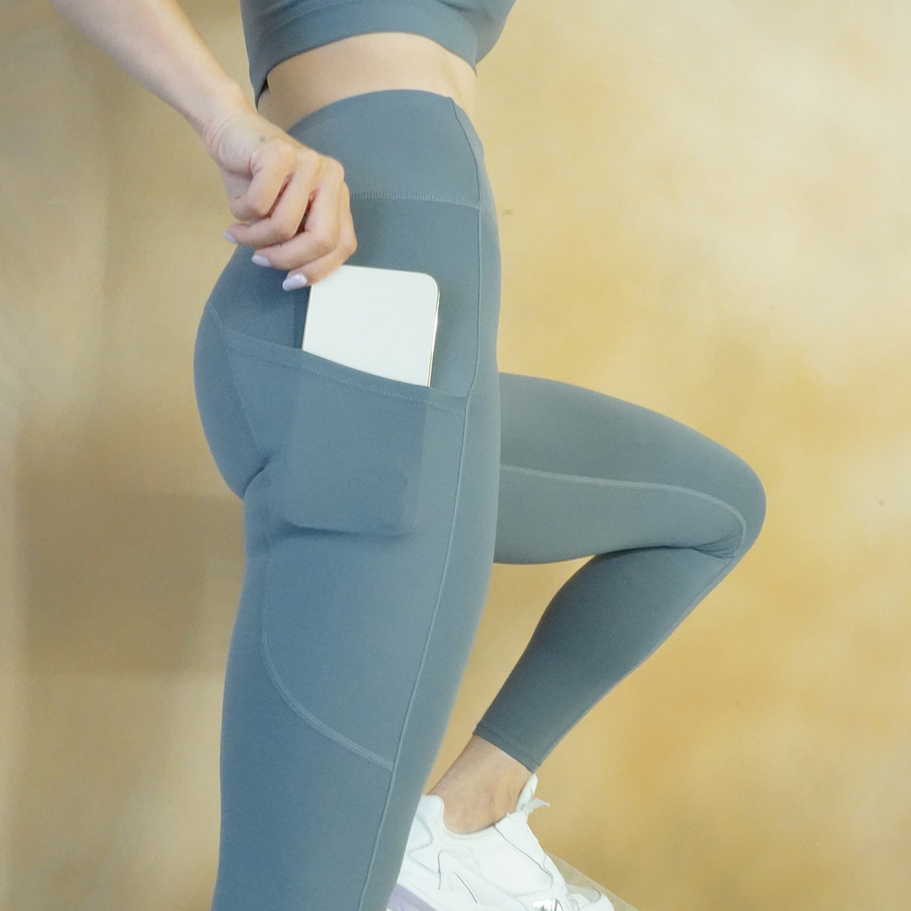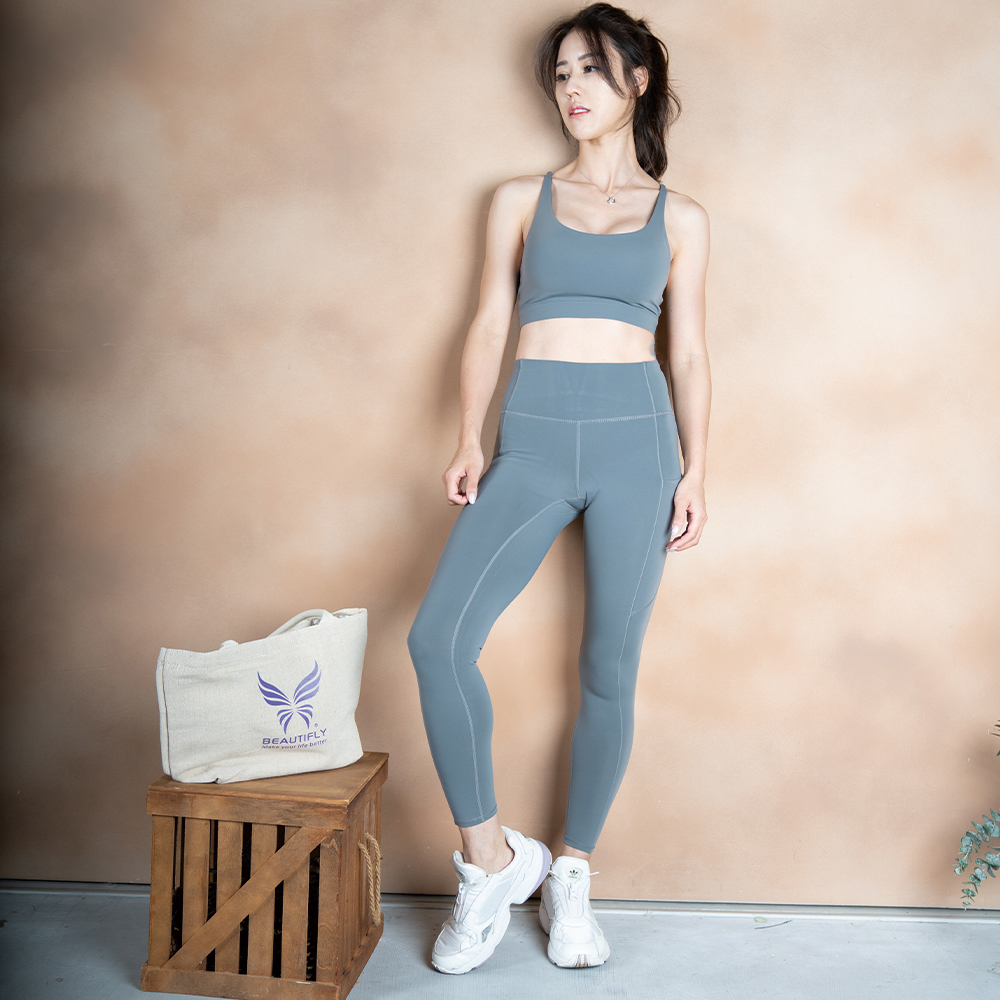 美麗飛高腰九分提臀褲 (有側袋款)-迷霧灰