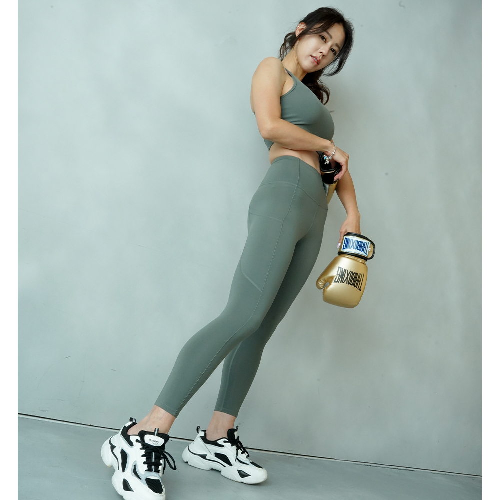 美麗飛高腰八分提臀褲 (有側袋款)- 霧灰綠
